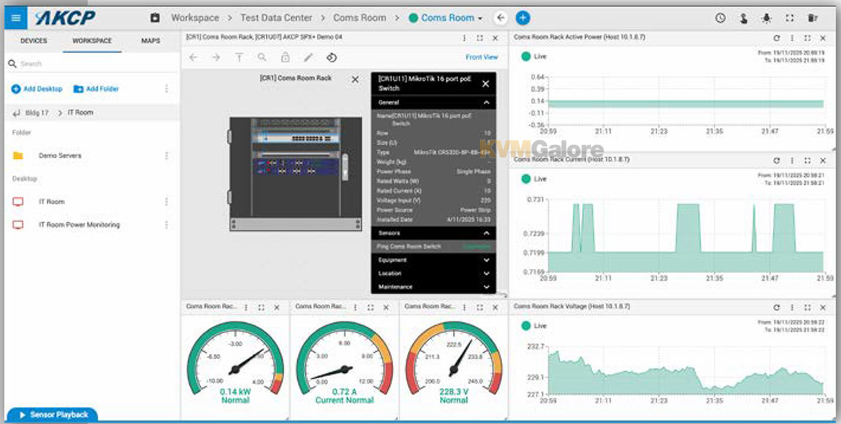 AKCP offers a wide range of sensors. Specialty sensors for the data center include cabinet thermal maps, contact-less current sensors and power meters. Close integration of AKCP sensors with Quicklime gives a complete end to end monitoring solution for your data center.