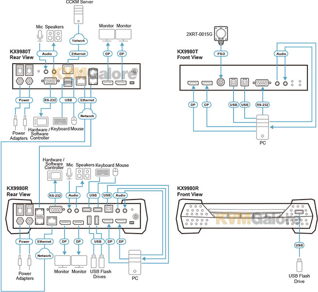 KX9980 comes equipped with a PS/2 port for connection to a KVM over IP Access Control Box (2XRT-0015G)**, which can be used to stop all remote receiver connections in times of emergency to allow technicians to perform timely troubleshooting and required maintenance at the local console.