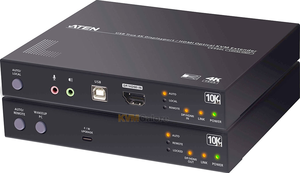 extends transmission of True 4K video, KVM and control signals over a single fiber-optic cable up to 6.2 miles (10 km)