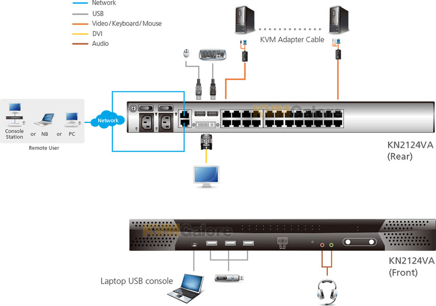 KN-series are IP-based KVM control units that allow both local and remote operators to monitor and access multiple servers from a single console. The switches in this series are differentiated according to the number of buses they support and the number of KVM ports they provide. Each bus permits a separate user session so that up to three (1 Local; 2 remote) concurrent independent connections to the attached servers can take place.