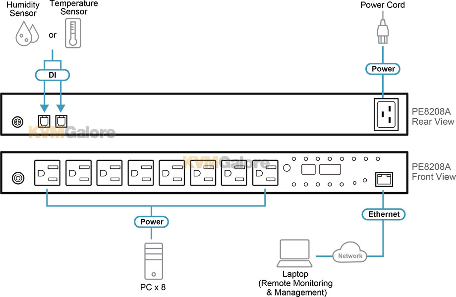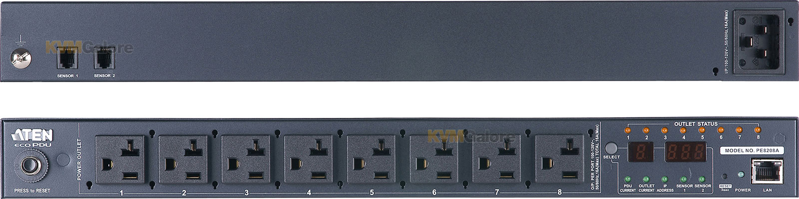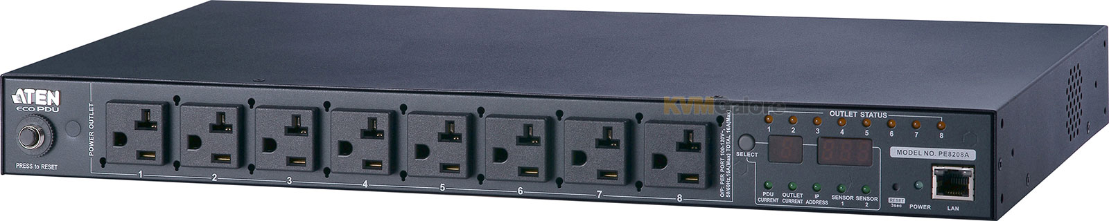 ATEN PE8208A eco PDU is intelligent PDUs that contains 8 AC outlets in NEMA 5-20R socket configurations. It provides secure, centralized, intelligent, power management (power on, off, cycle) of data center IT equipment (servers, storage systems, KVM switches, network devices, serial data devices, etc.), as well as the ability to monitor the center's health environment via sensors.