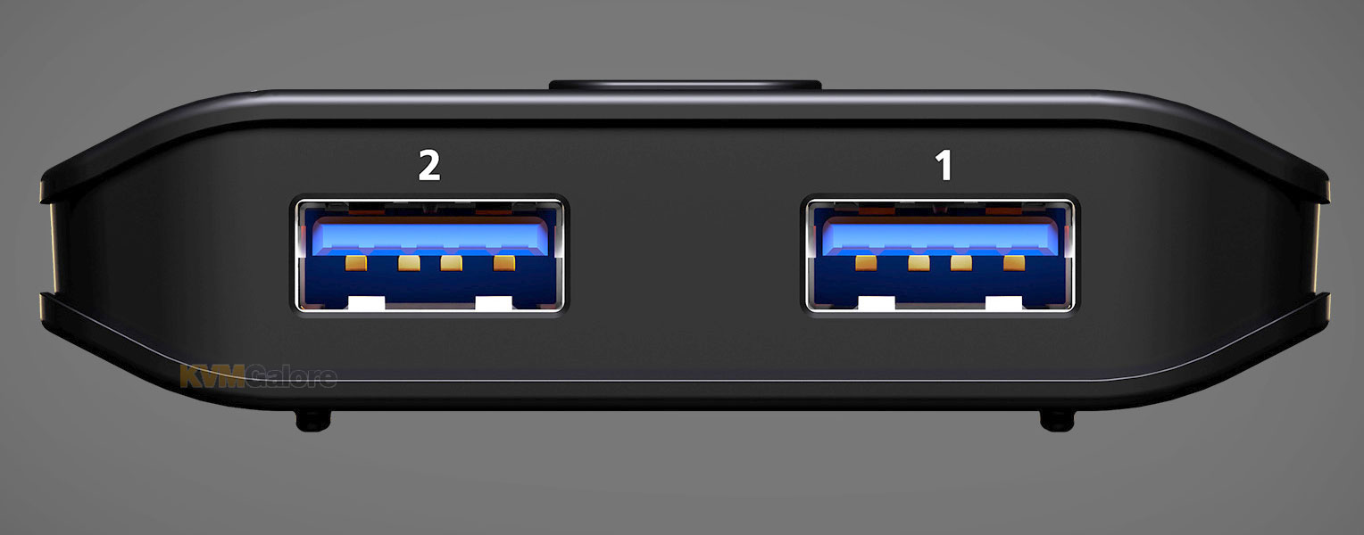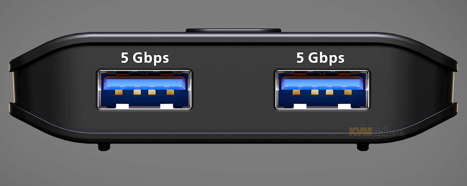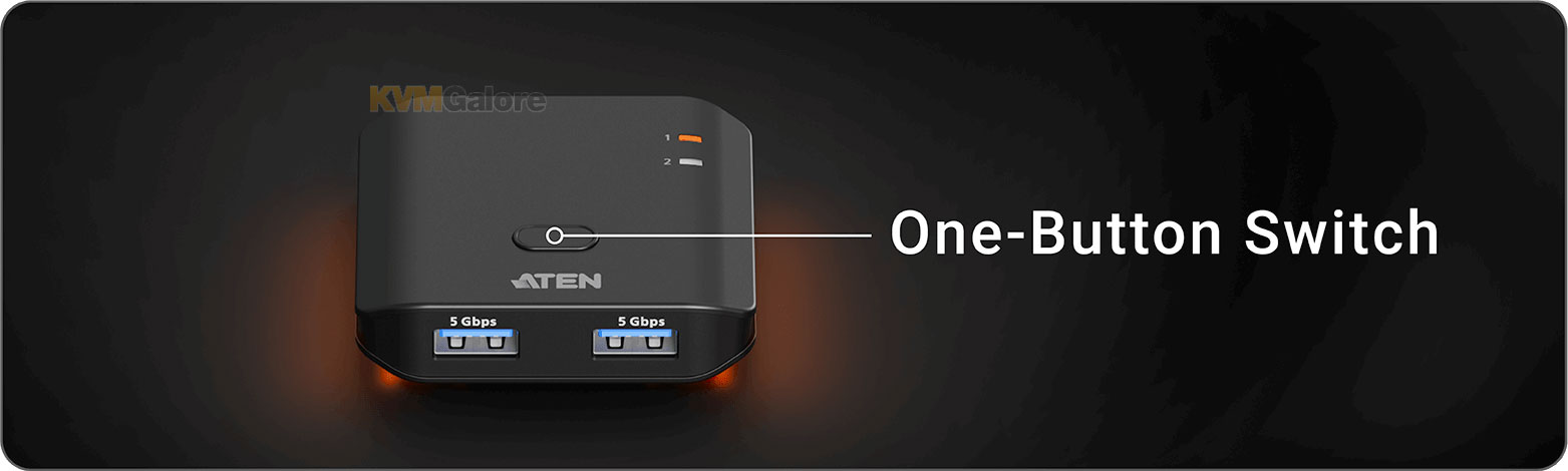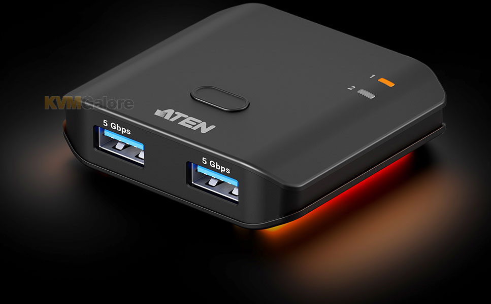 enables sharing of two USB peripherals at blazing-fast 5 Gbps between two PCs at a press of the push-button