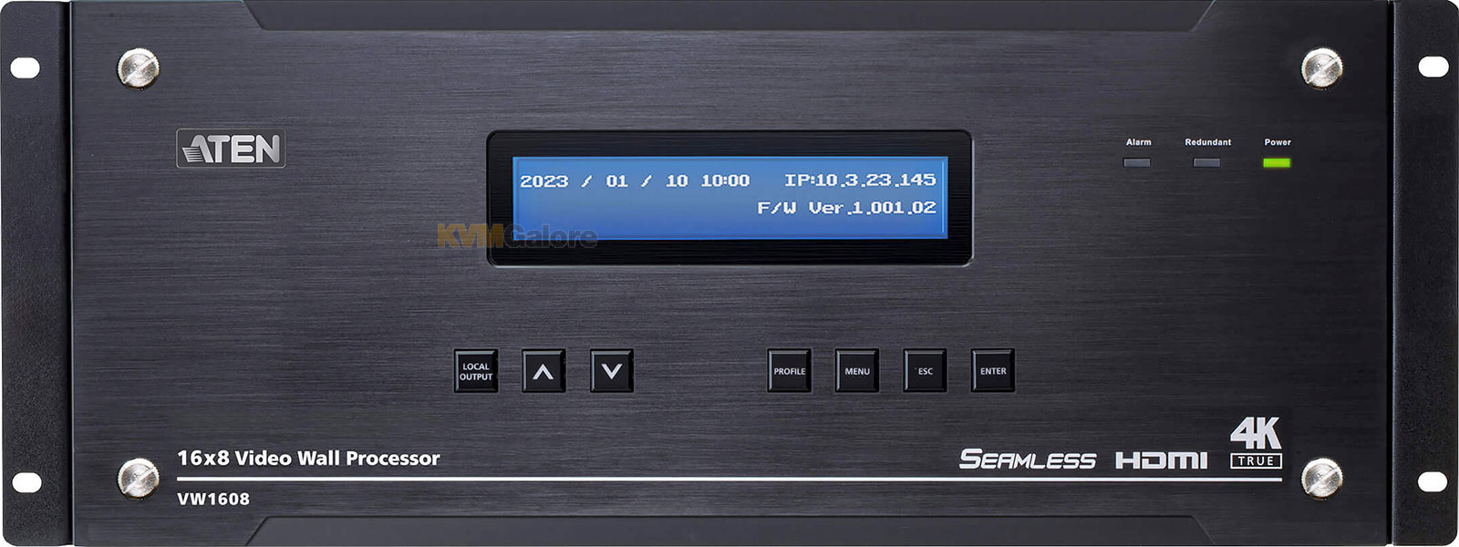 • Backup Mode 2x VW1608s daisy chain – the secondary unit continuously mirrors all system settings and configurations from a primary one in real time and takes control automatically when primary unit malfunction occurs for uninterrupted display performance