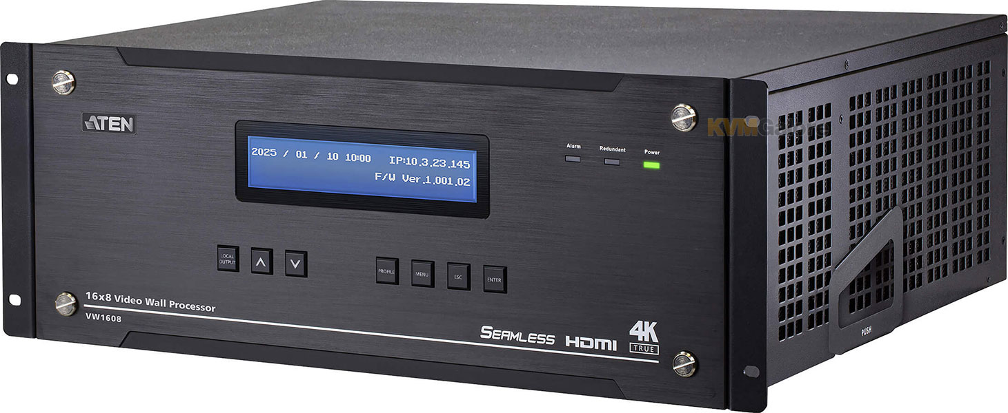 ATEN VW1608 is a high-performance True 4K hardware-based video wall processor distinguished by its unparalleled capability to seamlessly deliver HDMI sources up to 4K/60 4:4:4, ensuring flawless real-time video and impeccable image quality without any delays or frame loss.