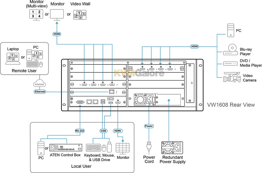 • WebGUI and local HDMI output offer remote and local previews of video wall layouts for real-time adjustments