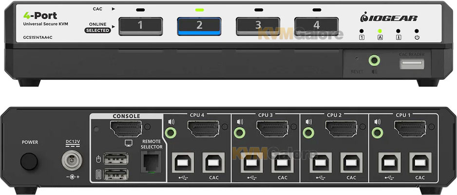 GCS1514TAA4C: Secure, 4-port, single-view, HDMI and/or DisplayPort* KVM switch