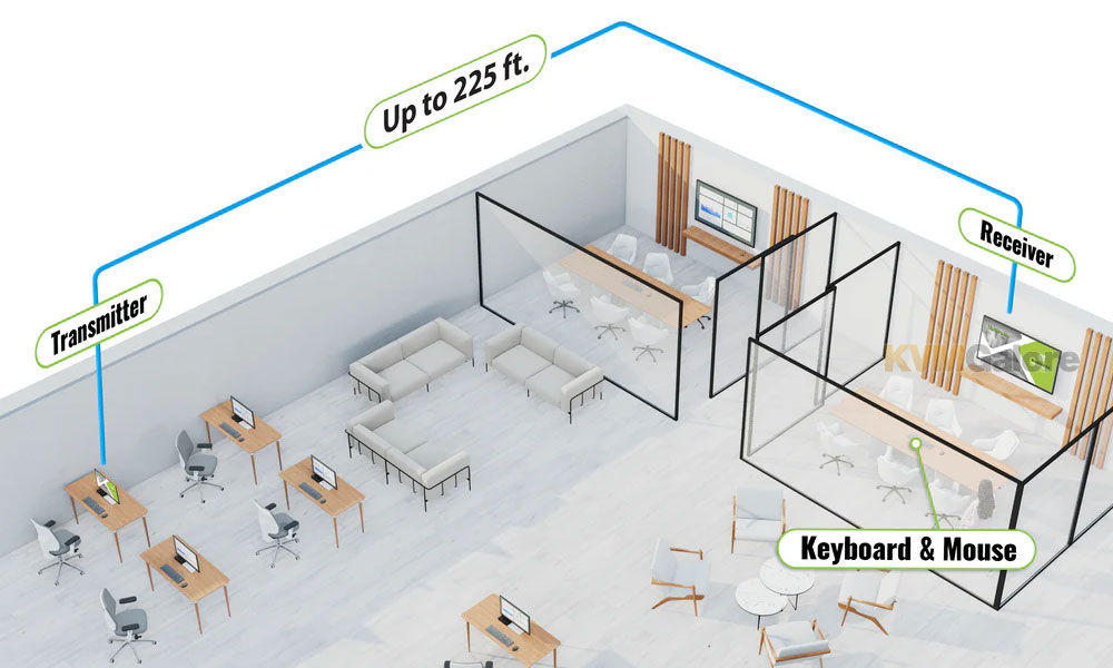 • HDMI and USB extension over a single CAT-5e/6/6a cable up to 230 feet (70 m)
