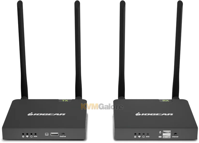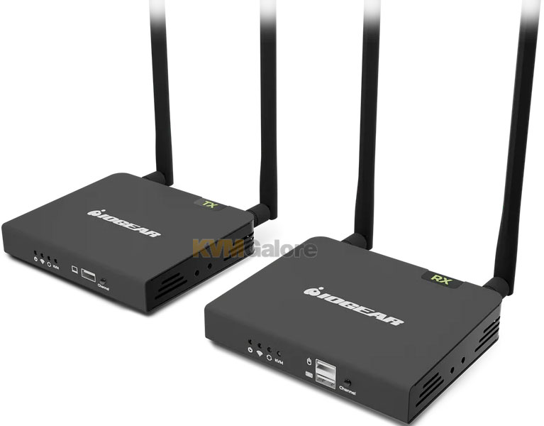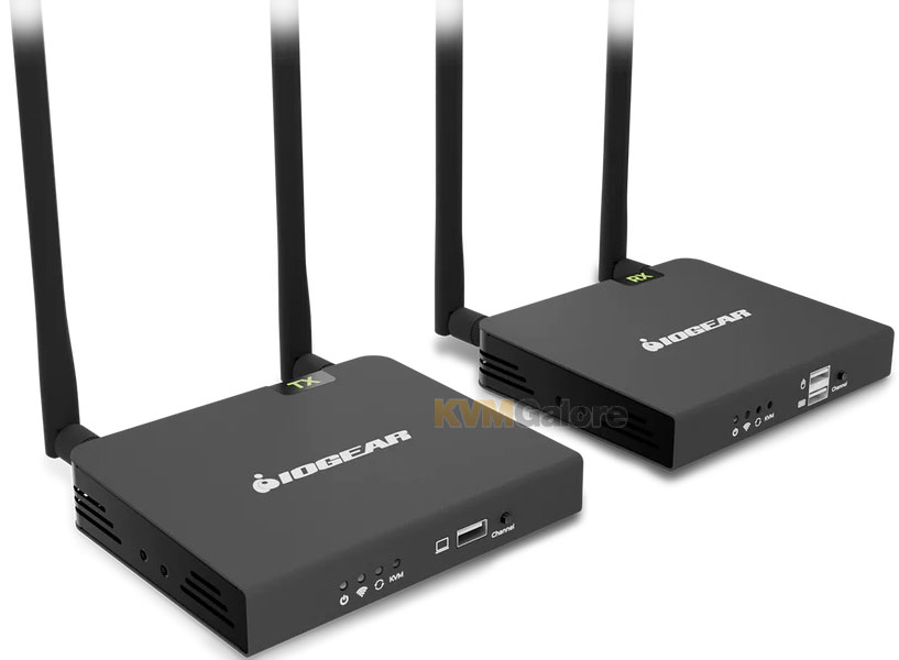 Compatible with IOGEAR HDMI KVM switches, the wireless video extension kit extends your control over multiple HDMI computers wirelessly up to 165 feet.