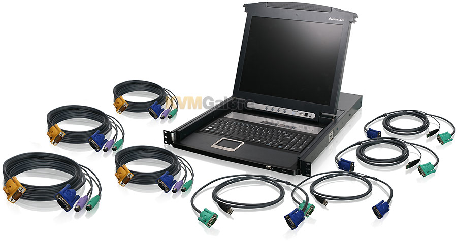 IOGEAR's 8-port 17" LCD combo KVM switch integrates a 17" LCD console with an 8-port KVM (keyboard, video, and mouse) switch, offering secure access to 8 VGA, USB or PS/2 computers.