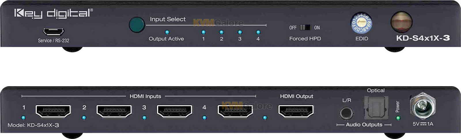 Key Digital KD-S4x1X-2 is a slim-series HDMI switcher offering professional-level quality, performance, and reliability at a cost-effective price point.