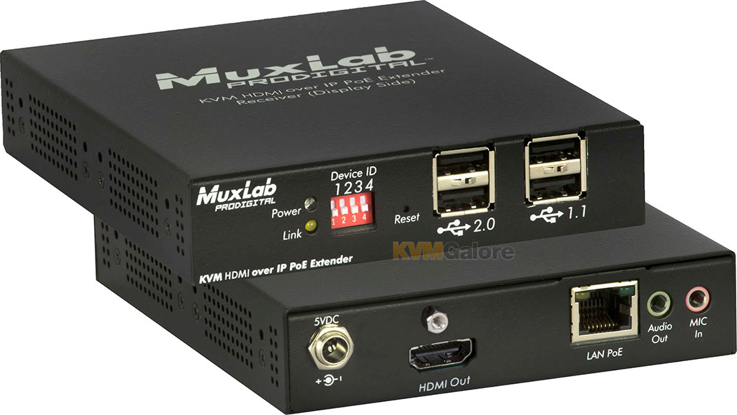 The Transmitter (500770-TX) and Receiver (500770-RX) support PoE (PD) if used with a PoE (PSE) Ethernet switch.