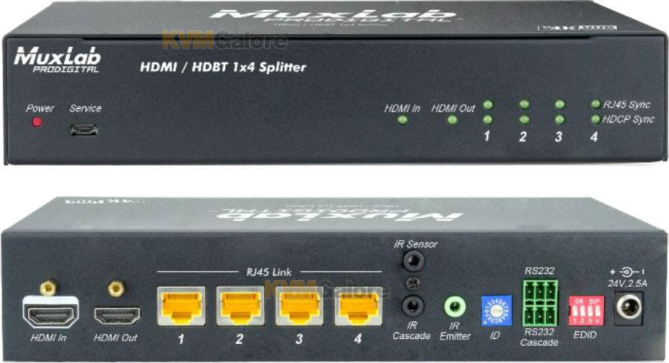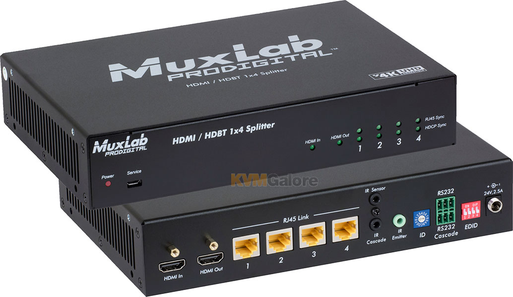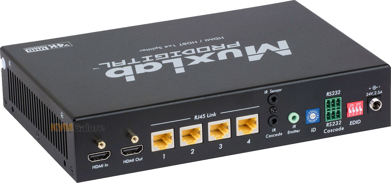MuxLab's Ultra-HD/4K HDMI/HDBT 1x4 audio/video splitter is also capable of bi-directional IR transmission and EDID management.