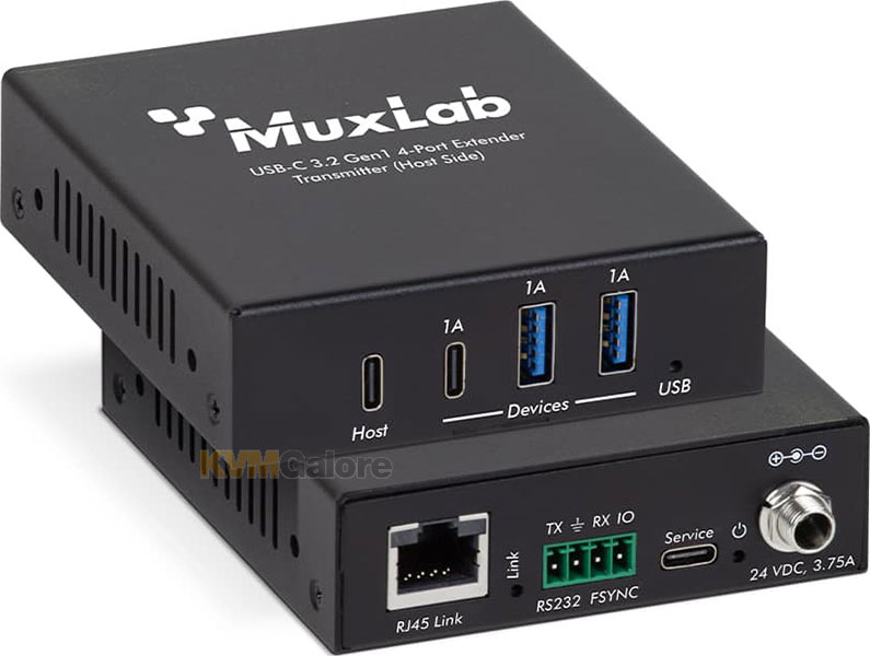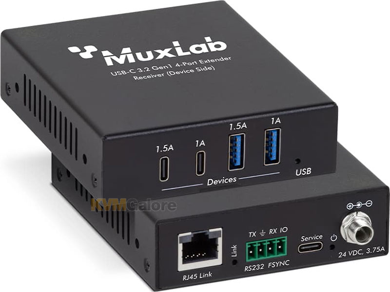 The USB-C 3.2 Gen1 4-port extender kit (model: 500534) enables USB 3.2 Gen1 connectivity at data rates up to 5Gbps and extends true USB up to 328 feet (100 m) over standard CAT-6a UTP cable.