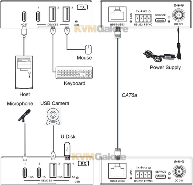 • Extension of USB 3.2 Gen1 up to 328 feet (100 m) over CAT-6a cable