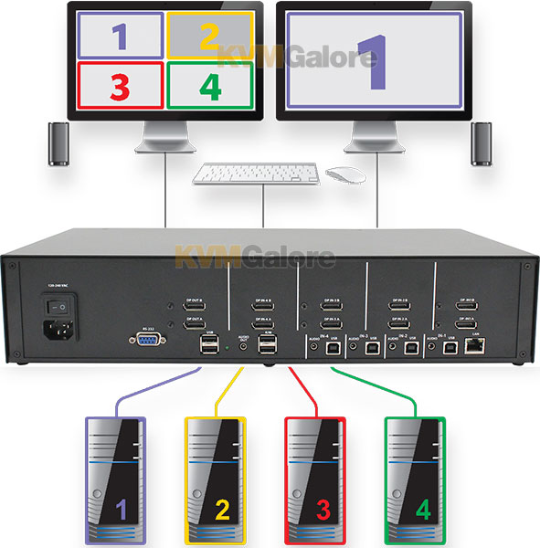 4-port dual-DisplayPort multi-view KVM switch