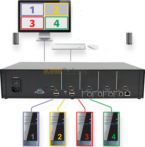 4-port DisplayPort multi-view KVM switch